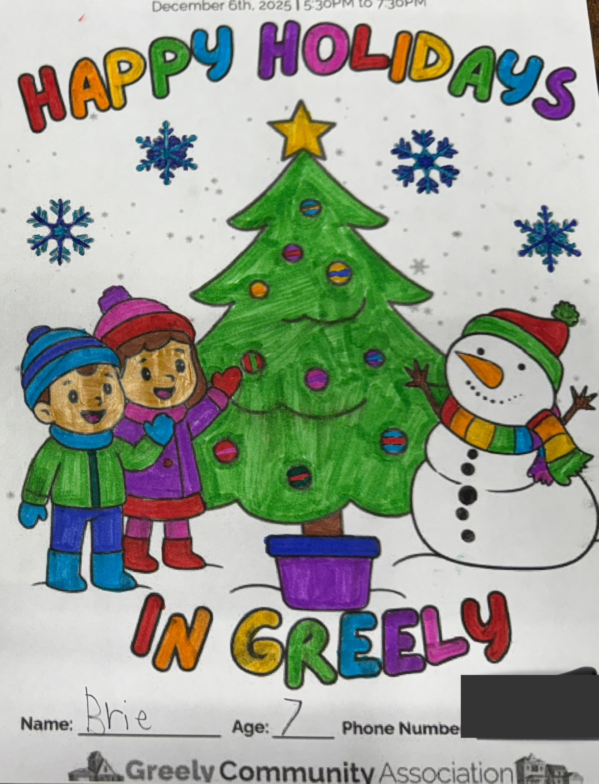 Thank you to everyone who participated in the Greely Holiday Tree Lighting event on December 6th! The Greely Community Association was thrilled to receive so many beautifully colored sheets—your creativity made it a tough job for our judges! The GCA received close to 80 entries!